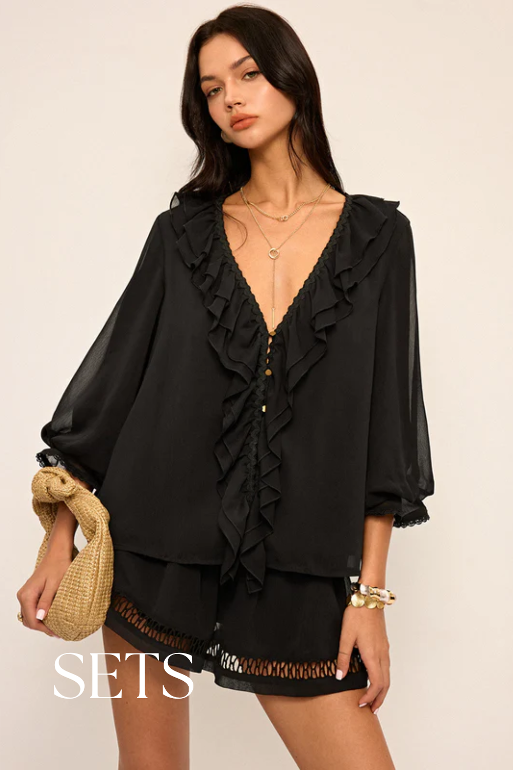 Halbtransparentes Chiffon-Top mit Rüschensaum und Bindeband vorne